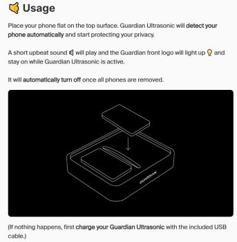 Microphone DisabledWhen placed on Guardian Ultrasonic, your phone can't hear anything of its surroundings. You can talk freely without your phone secretly listening to you.